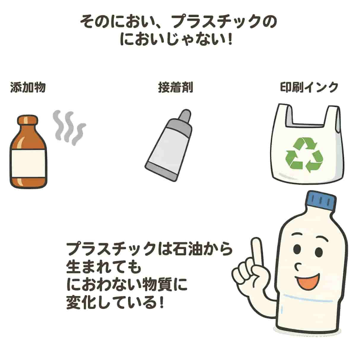 実はその答えには、においというものの正体と、プラスチックの変身のしかたが深く関係しているのです。