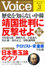 総力特集「靖国批判に反撃せよ」では、小川榮太郎氏が「靖国参拝は純粋に精神的価値であって、外交的な駆引きが本来存在しようのない事案」と喝破する。岡崎久彦氏は靖国参拝問題も従軍慰安婦問題も、実は日本(のメディア)から提起され、戦後の歴史問題が歪められたと説く。在米特派員の古森義久氏は「日本側としては米国や国際社会に対して靖国参拝の真実を粘り強く知らせていくべきだ」という。長期戦を覚悟のうえで、世界の理解を得るしかない。
