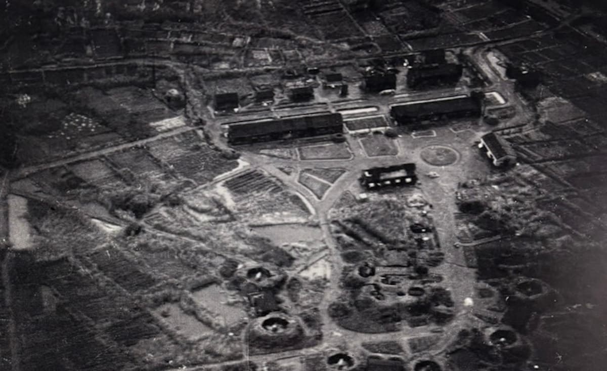 高射砲陣地の空撮(場所不明、米国立公文書館所蔵写真 佐藤洋一『米軍が見た東京 1945 秋』洋泉社 2015)
